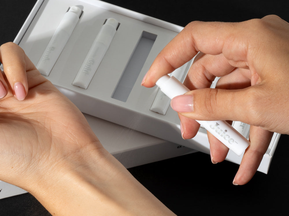 My signature scent has been Commodity Velvet, which I really love, but I was ready for a little change of pace. The discovery kit is the perfect way to try new scents. I love the scent notes that come with it, but of course scents always smell differently based on an individual's unique chemistry. Based on the notes I thought Milk and Juice would be too sweet/fruity. Turns out these are my favorites. Juice is my absolute new fave and will be ordering full size. It does not smell fruity - it is complex, luscious, and bright. The dry down keeps complexity, it just gets better over time. Milk doesn't go on super sweet, but is rich and cozy. The dry down is where I get the marshmallow note. Gold is also very nice, though not as alluring as Milk and Juice. Moss is very clean, but too light and didn't last. Book goes on slightly vegetal but dries down to a smoky sweet musky scent. Paper was my least favorite - the scent notes indicate sandalwood, but that didn't show up for me. Still, an interesting scent, might work very well for others. I am a Commodity true believer and excited to have found my new scent (JUICE!). Excited to try the scents they roll out next..