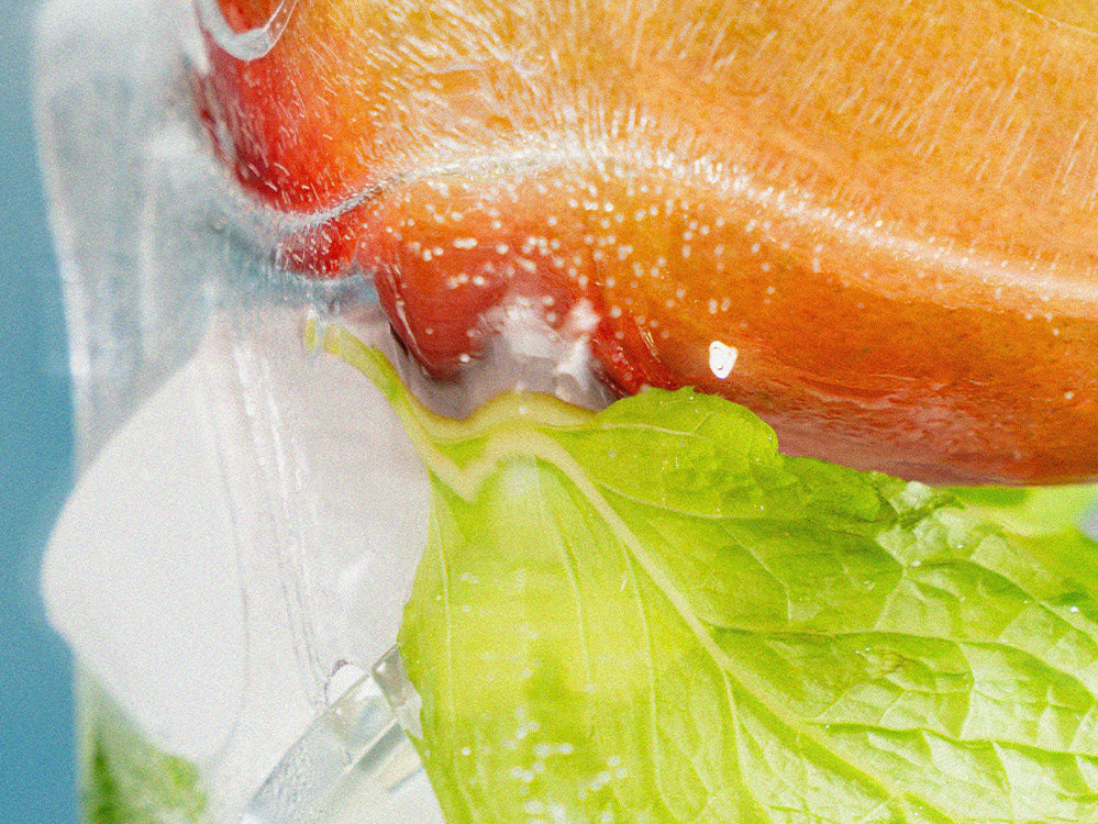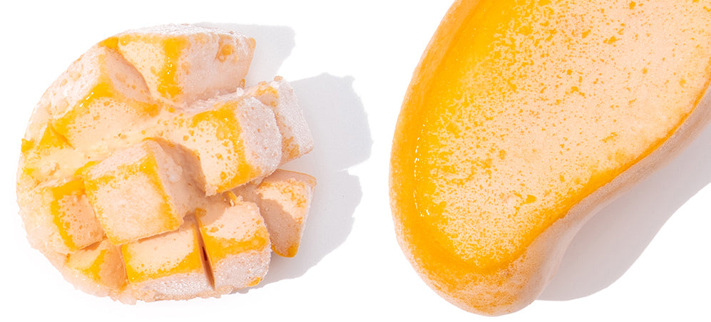 En saftig frukt som är fryst när den är som färskast.